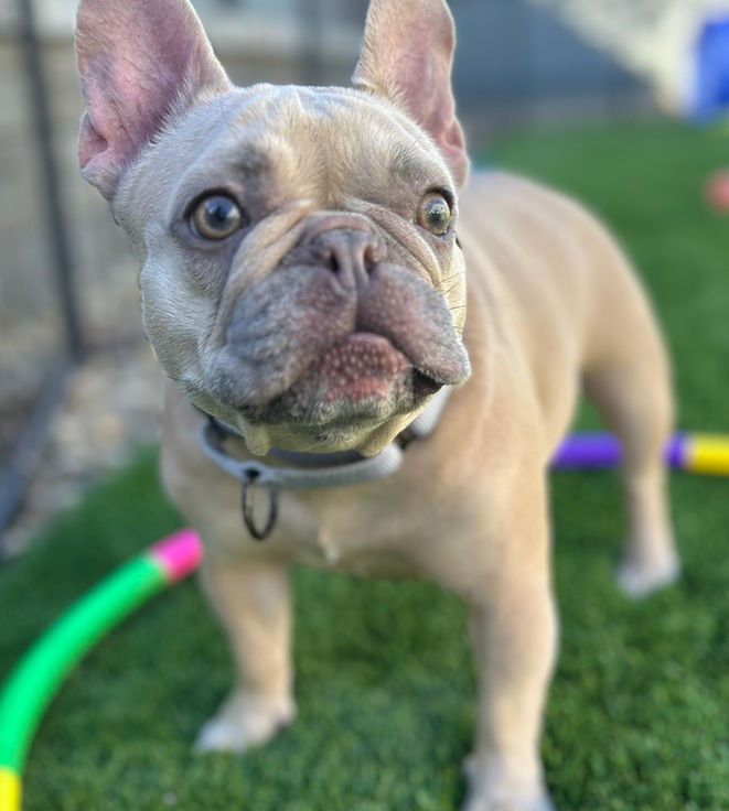 Is “adorable” the right answer here? Because that’s what I look like! I am a little fawn-colored potato with big ears, adoring eyes, and the cutest Frenchie pout ever.